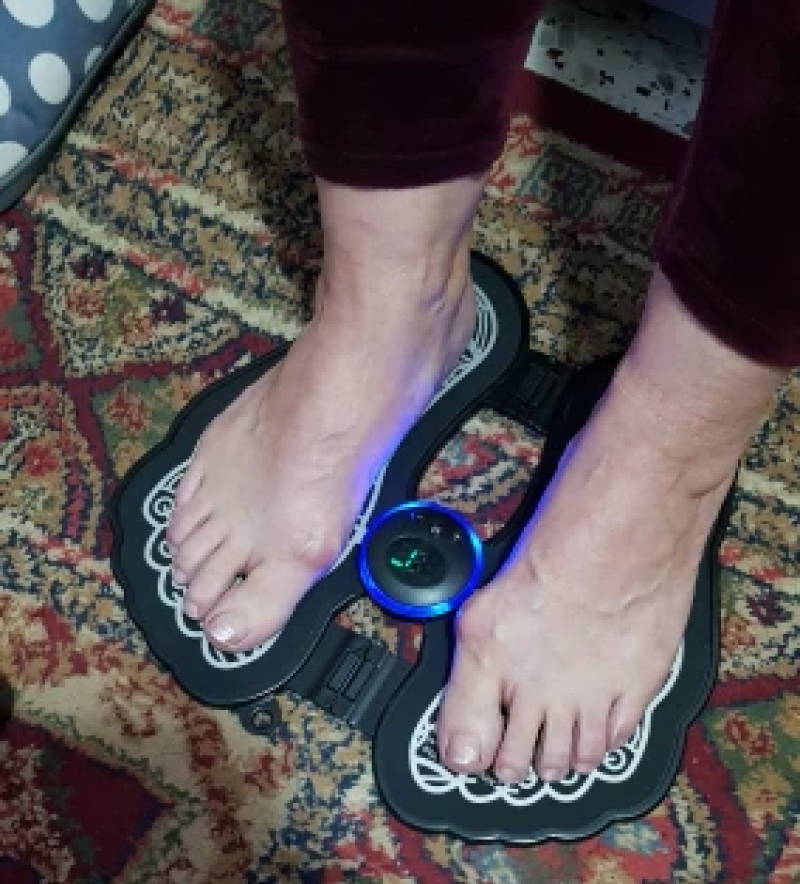 Cada vez que siento la más mínima molestia en mis pies, me coloco el masajeador en las piernas y detiene la hinchazón y el dolor de inmediato.